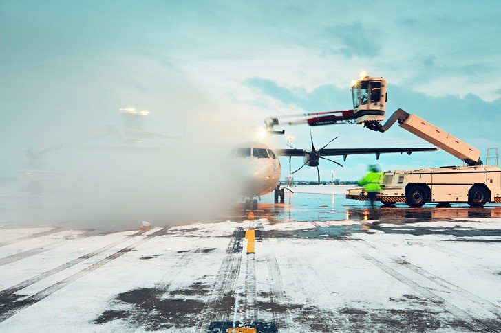 Để giải quyết điều này, tại những nơi có nhiệt độ lạnh, máy bay thường được phủ một lớp chất lỏng đặc biệt để chống lại việc bị đóng băng.
